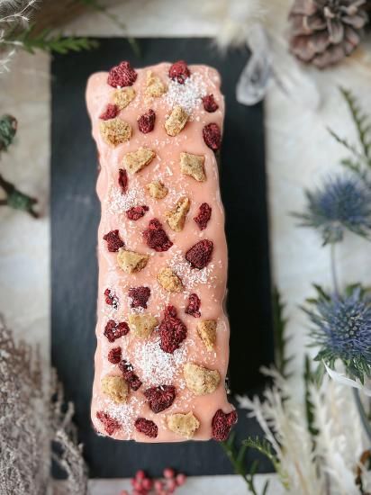 有機アーモンドプードル、山芋粉、有機ココアパウダー、平飼い卵、有機ココナッツシュガー、有機メープルシロップ、グラスフェッドバター、有機ラズベリー、無農薬ココナッツオイル、有機カカオニブ、有機ココナッツクリーム、有機ラズベリースプレッド、農薬不使用甜菜糖、有機レモン果汁、チェリーリキュール、有機ココナッツフレーク、天然塩(ハワイ製造)/重曹、有機バニラオイル
